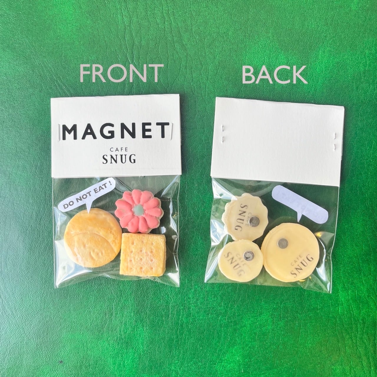 アイシングクッキーを型取りして型から製作し、樹脂を重ねて作ったSNUGオリジナルマグネットです。