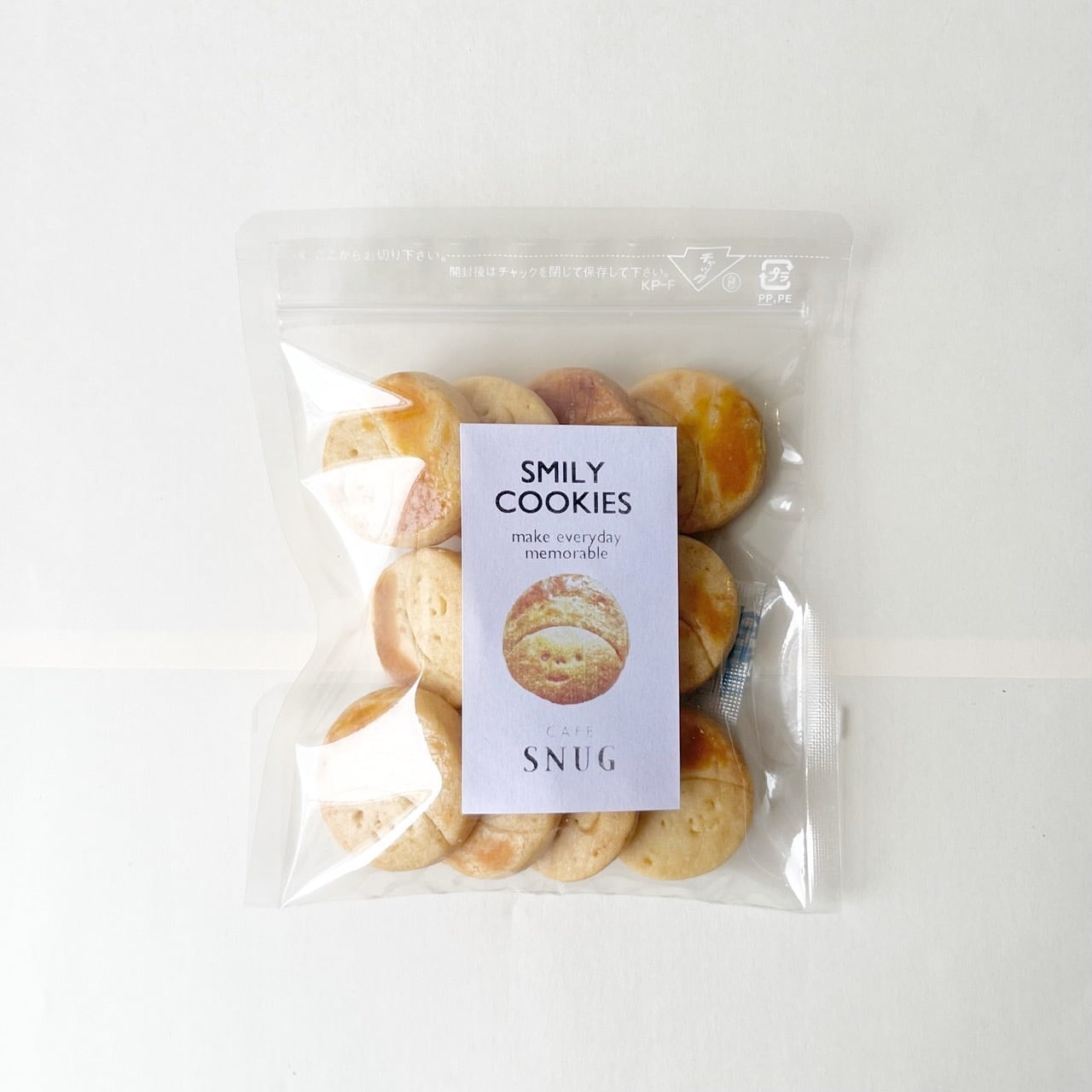 素朴で、毎日のおやつに食べたくなるSNUG 定番のスマイリークッキーです。