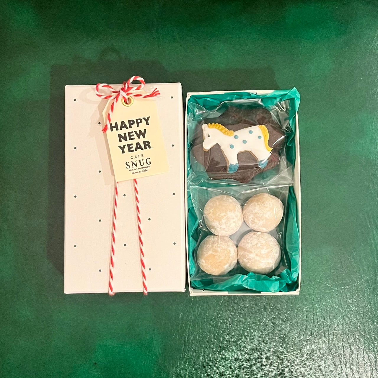 絵馬みたいな馬クッキー和三盆のスノーボールのセットです。