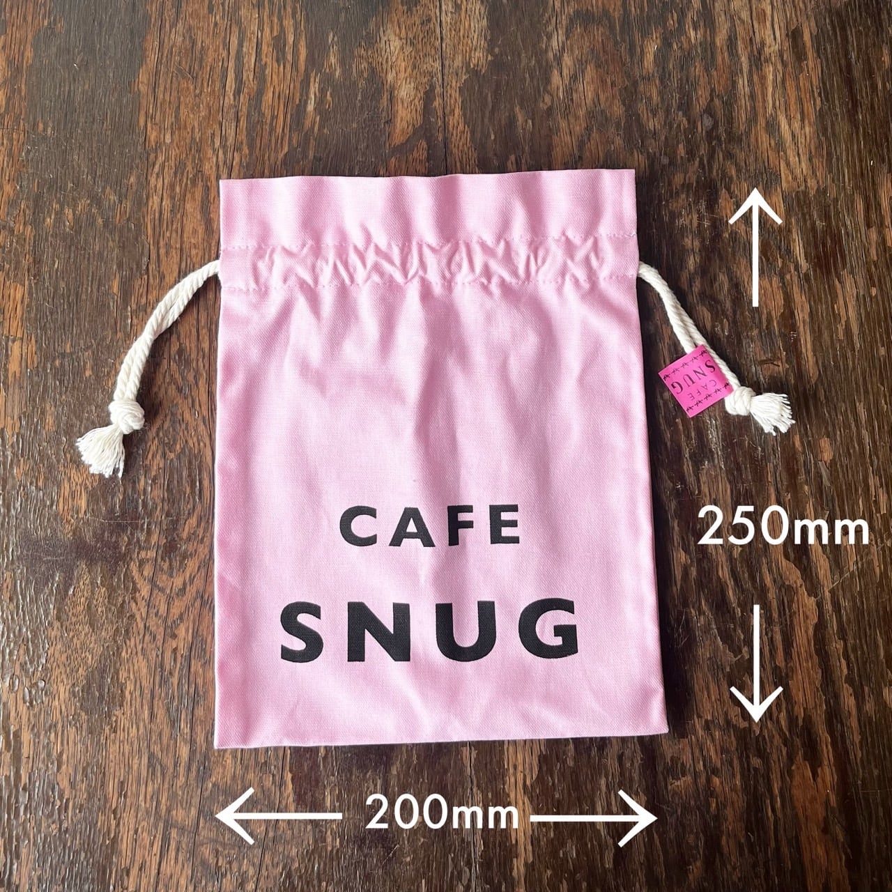 SNUGのロゴ入りオリジナル巾着バッグです。